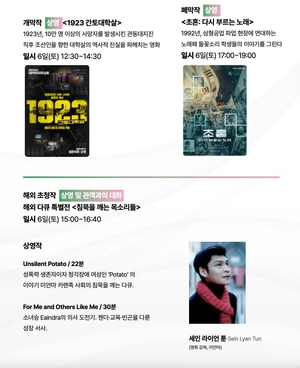 4 | 영화상영2 “초혼 - 다시 부르는 노래” (17:00) | - |