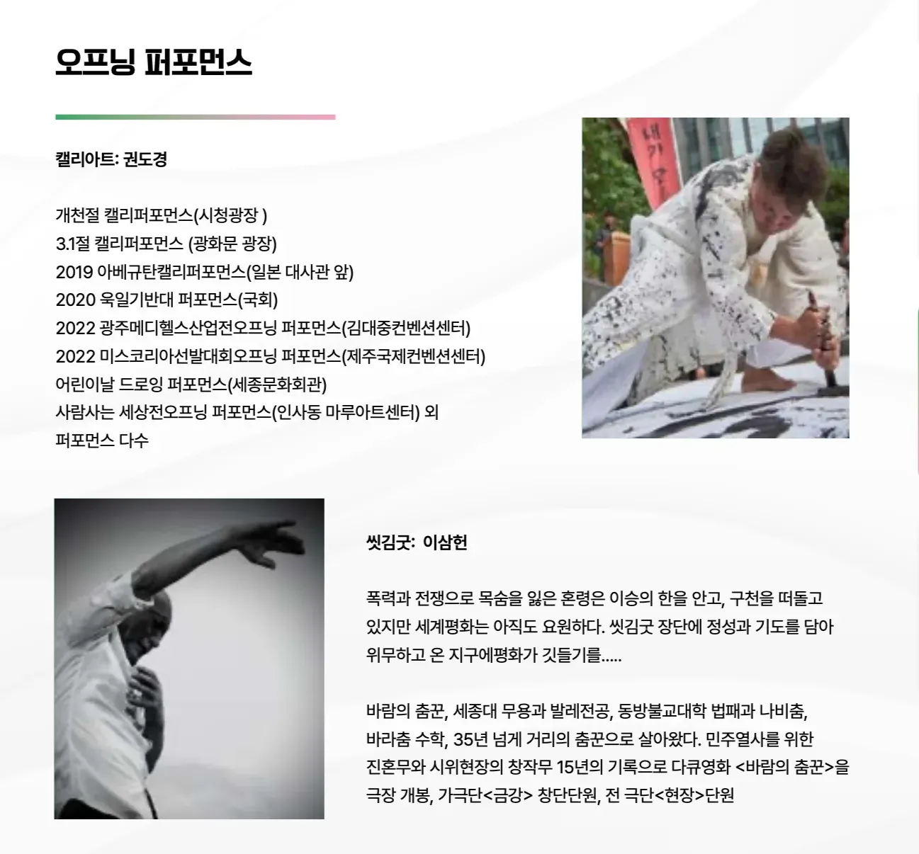 5 | 축하공연 | 캘리(권도경), 씻김굿(이삼헌) |